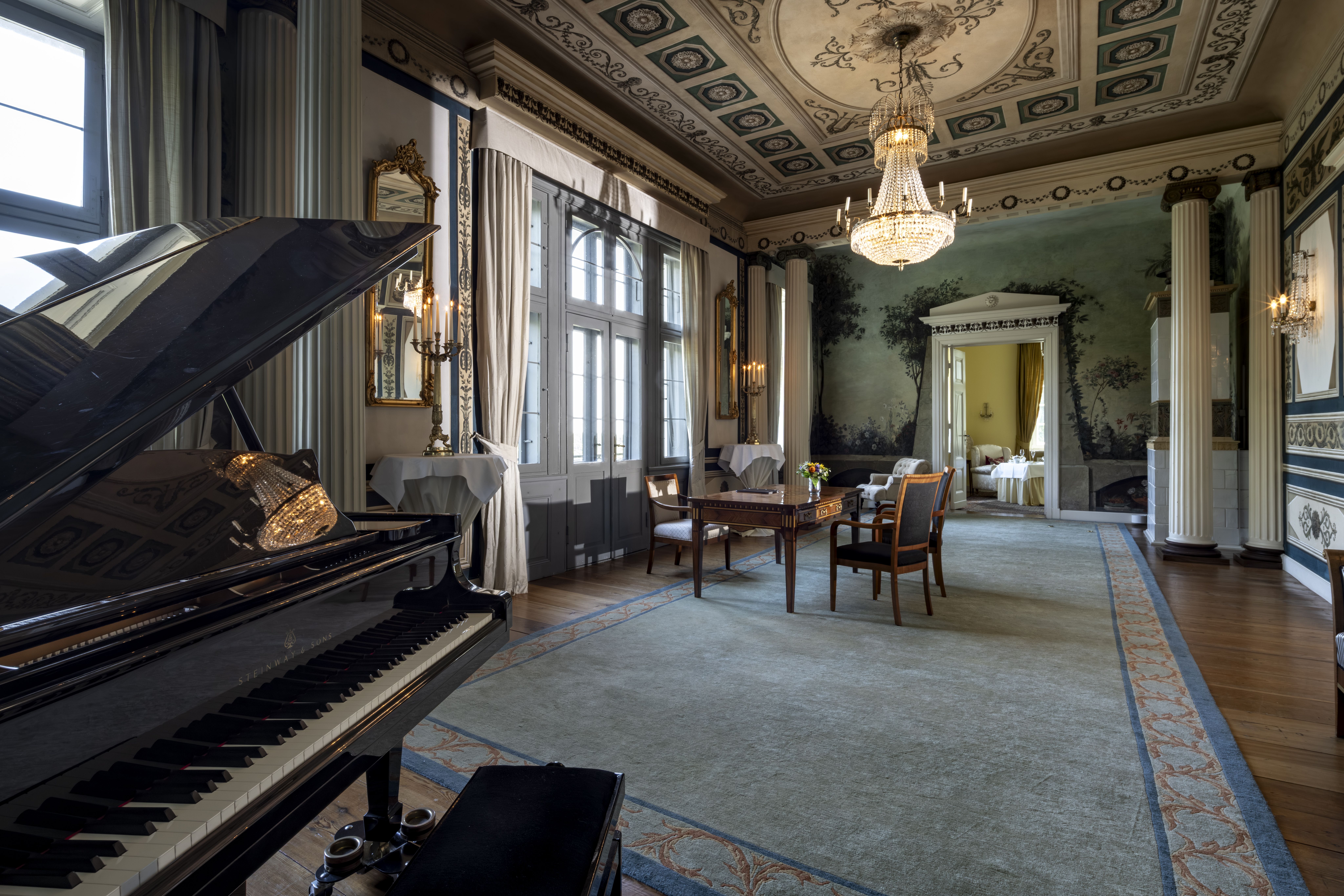 Begrüßungskaffee mit einer Etagere süßem Gebäck und herzhaften Canapés, Kaffeepause mit frischem Fruchtsaft, Müsli und einem Obstkorb, Saisonales Mittagsmenü in drei Gängen oder Buffett, Unlimitiertes Wasser, Kaffee, Tee und Softgetränke im Tagungsraum, Kaffeepause mit Smoothies, Kuchenauswahl, Gemüse mit Dips Technik (Smartboard, Flipchart, Moderatorenkoffer, Beamer und Leinwand), Bereitstellungskosten für den Tagungsraum WLAN – Internetzugang